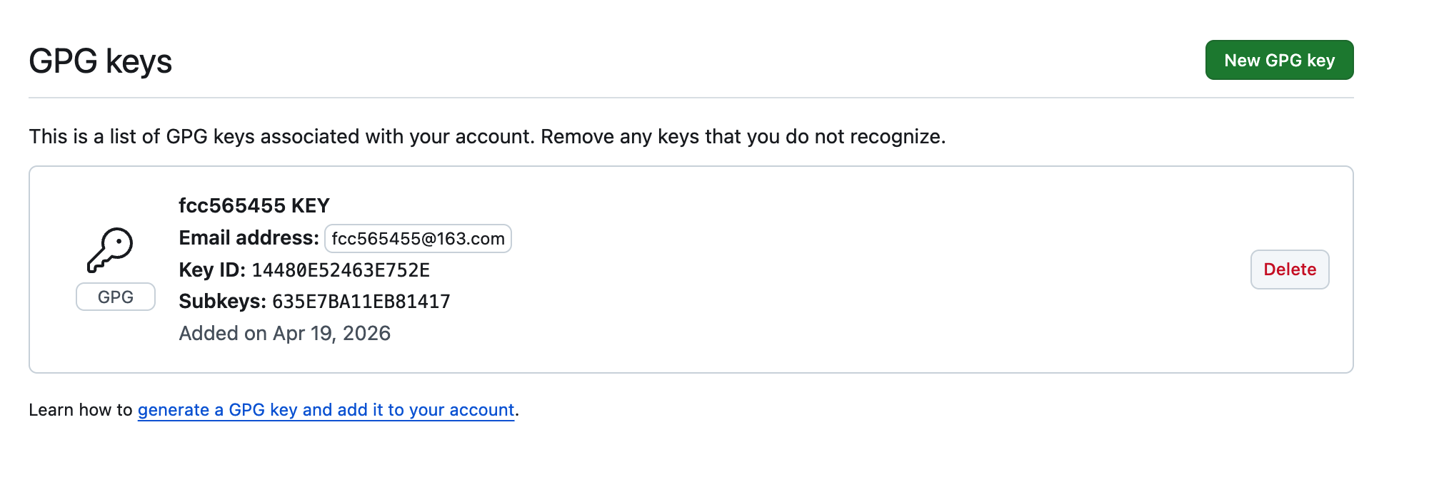 随后我又想了解一下GPG对commit签名,它能证明你是你。由于Git去中心化设计,理论上来说任何人都可以伪造你的身份。